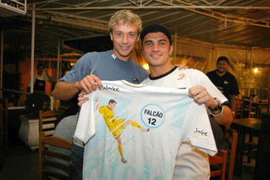 At the cocktail Falcão also said to the press present in the party that the Sao Paulo Futebol Clube has invited him to be part of the group that is going to Japan next Saturday to play the Toyota World Champion. He also revealed that Marco Aurelio Cunha, the responsible for the sportive area in the soccer club, has also proposed to have the “number 12” back for the Paulista Championship next year. “I would like to thank Mr. Marco Aurelio Cunha, but I can’t leave Malwee now, I am really happy here and I think it won’t happen”. At the same time he expressed the willing to try playing in the field again. “I would love to play Football again, if Malwee and Sao Paulo agree I would do it, but I am really happy where I am”.